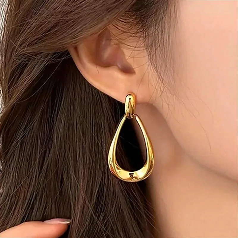Elevate your look with these bold and elegant drop earrings designed to make a statement. Featuring a thick, chunky silhouette with a refined teardrop and geometric shape, they blend vintage charm with modern trend appeal. The polished gold-tone finish adds a touch of luxury, making them perfect for both everyday wear and special occasions.