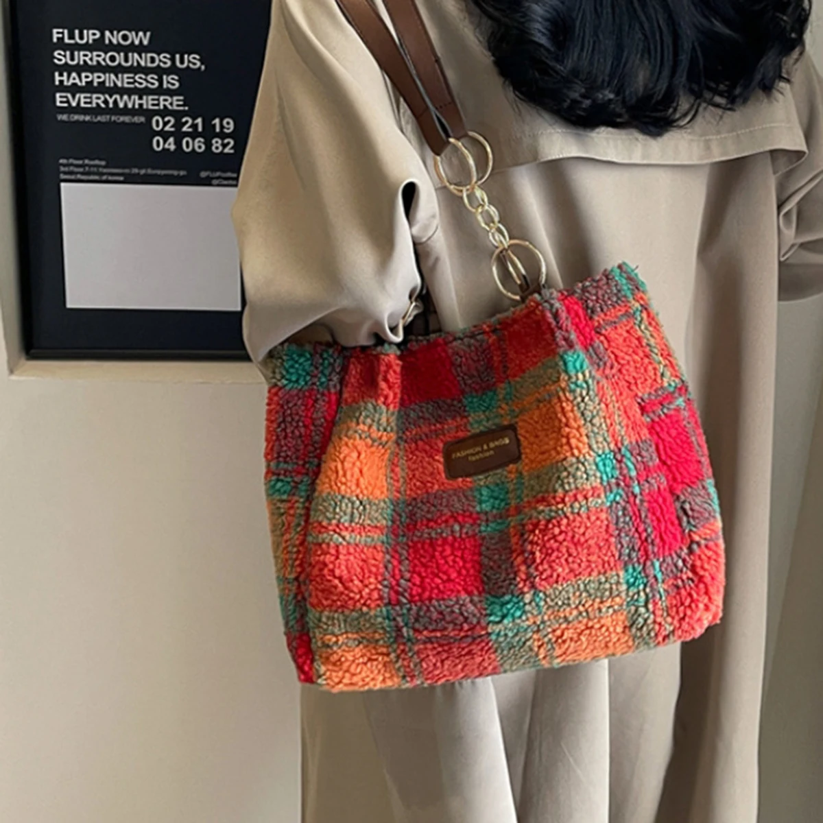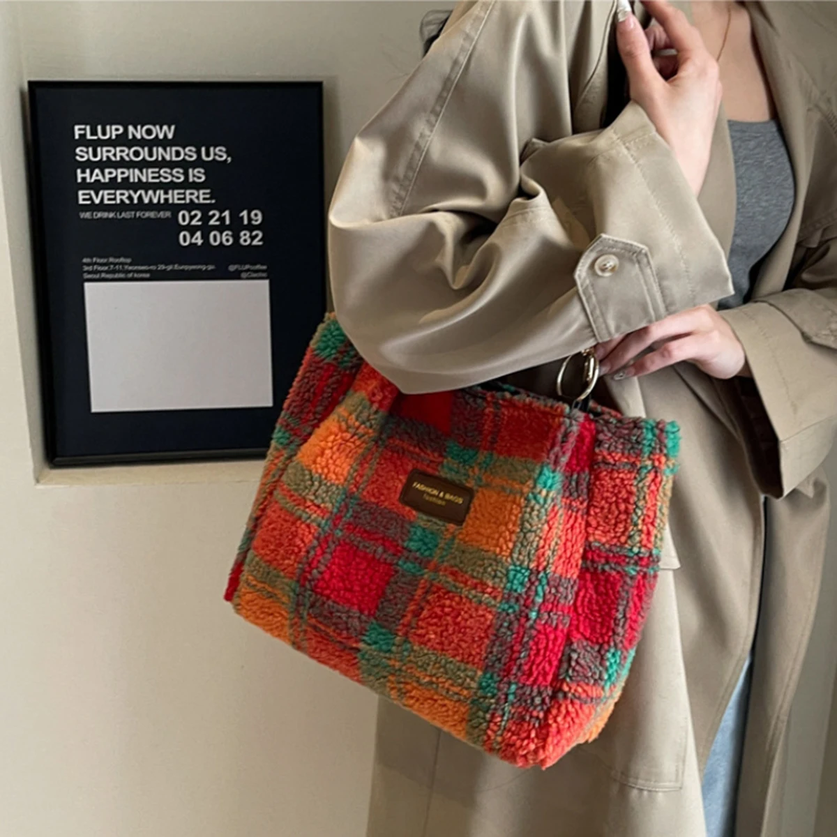 Add warmth and character to your everyday look with this stylish plaid bucket bag, designed for both comfort and versatility. The soft cotton exterior gives it a cozy, relaxed feel, while the classic plaid pattern adds a timeless touch that works effortlessly across casual outfits, seasonal layers, and daily errands. Its unisex design makes it a perfect choice for anyone looking for a fashionable yet practical accessory.